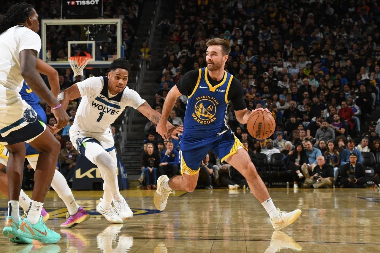 Pat Spencer sous le maillot des Golden State Warriors face aux Minnesota Timberwolves, le 12 décembre 2025. © Noah Graham / Getty Images via AFP