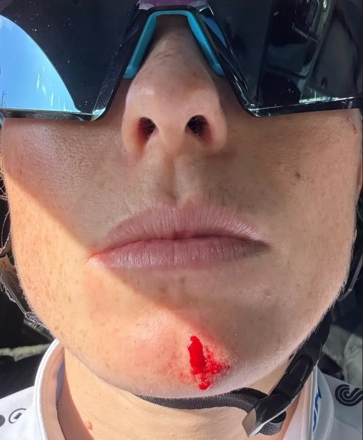 Le visage de Demi Vollering après sa chute à l’entraînement. Capture d’écran Demi Vollering Instagram